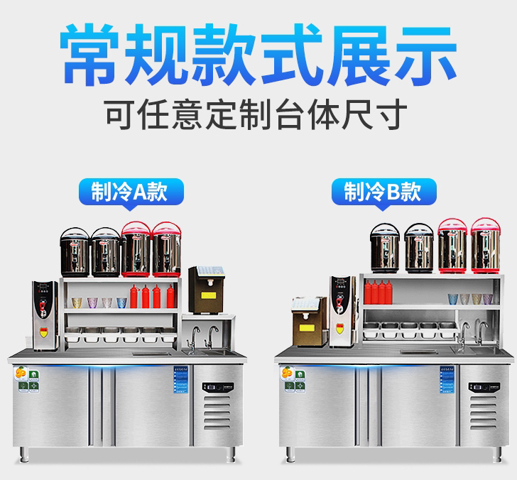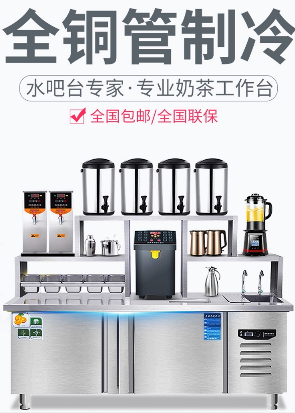 Milk tea shop equipment full set of supplies stainless steel commercial refrigerated freezer water bar operation custom tribute tea power saving station