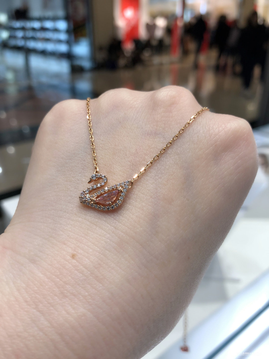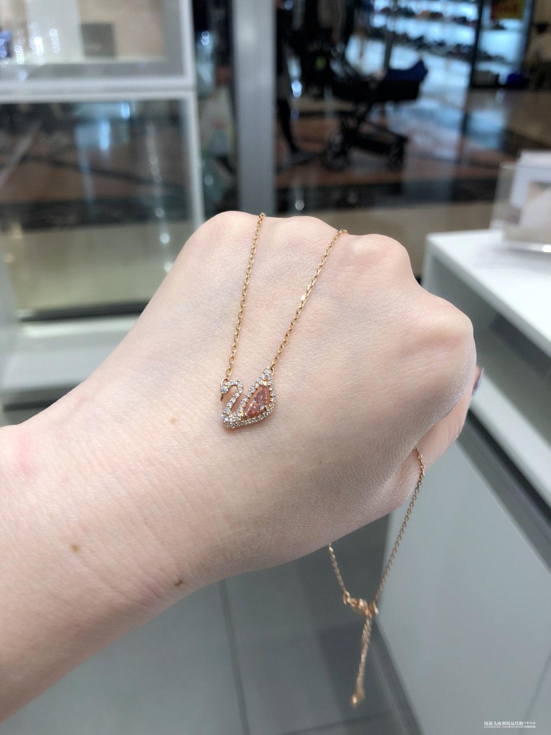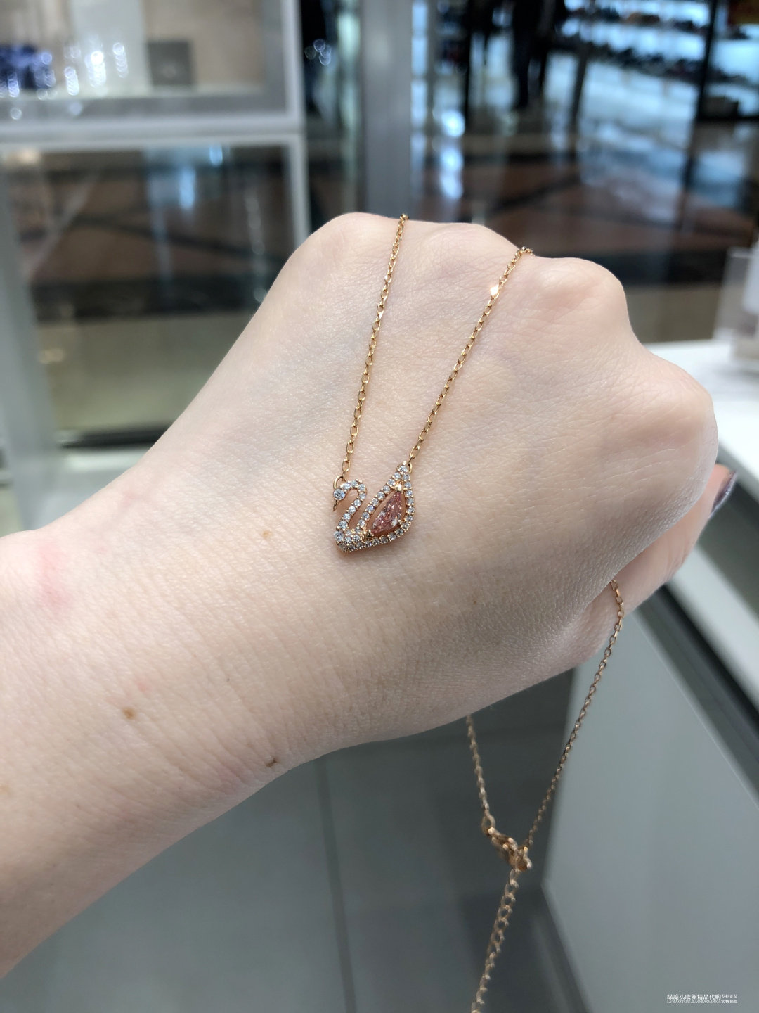 Spanish Special Cabinet Schwaruocene Hollowed-out Crystal Powder Swan Necklace Woman Lock Bone Chain 5469989