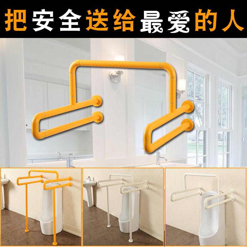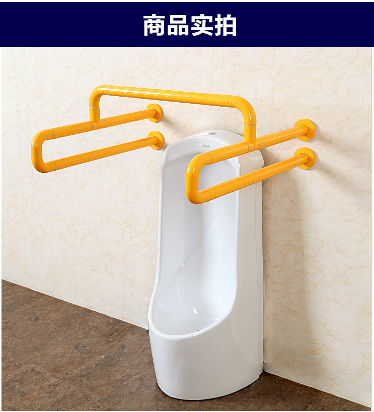The urinal does not fall to the floor with armrests, the yellow urinal does not fall to the floor with handrails, the white urinal does not fall to the floor, and the heightened version, the yellow urinal, does not fall to the floor, and the heightened version, white