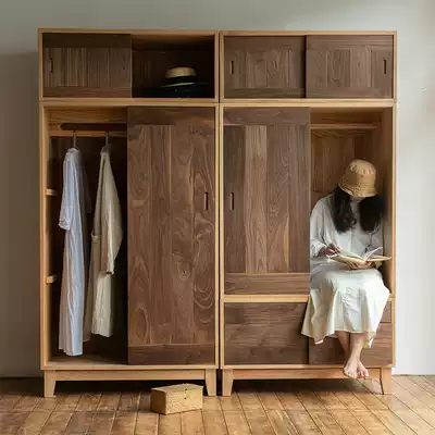 MUMO wood ink tree wardrobe solid wood combination red oak black walnut simple wardrobe sliding door cabinet