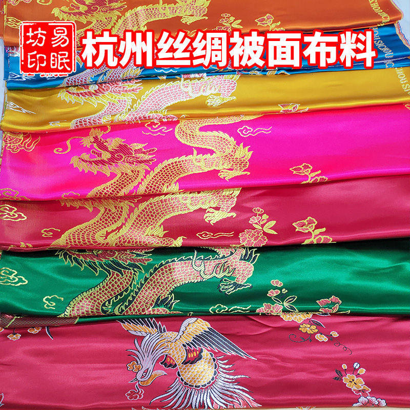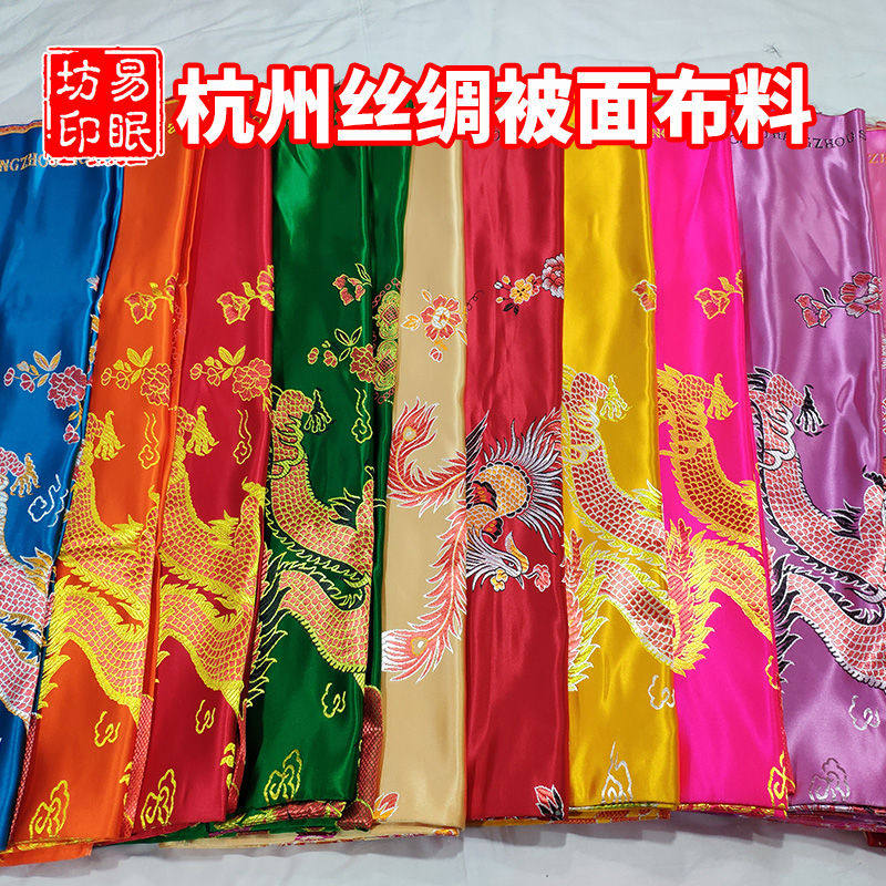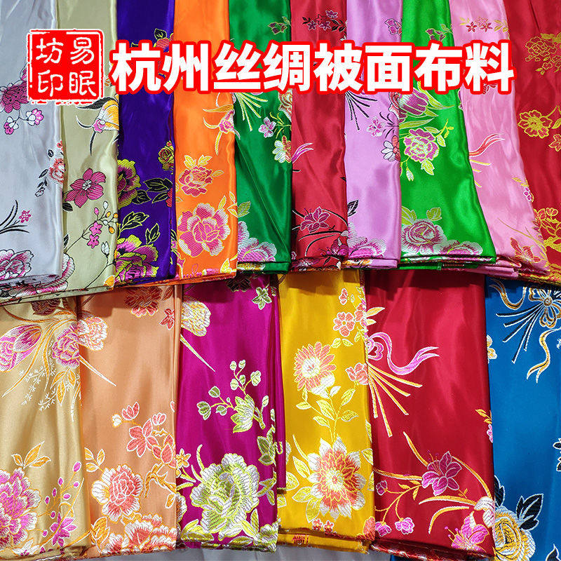 Hangzhou silk soft satin quilt fabric Wedding with old quilt face Old-fashioned edging cotton quilt quilt cover fabric tradition
