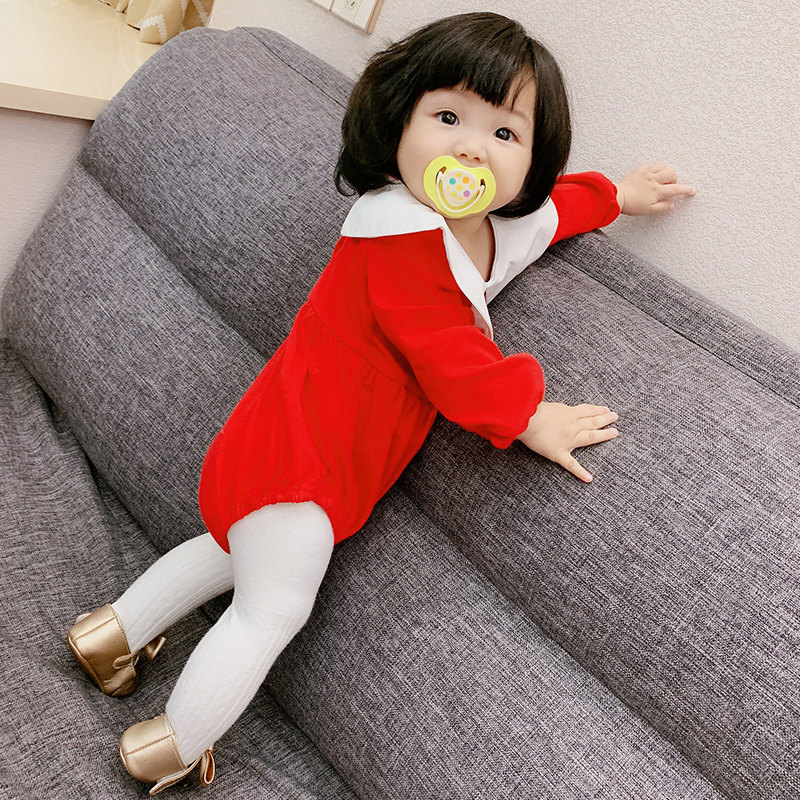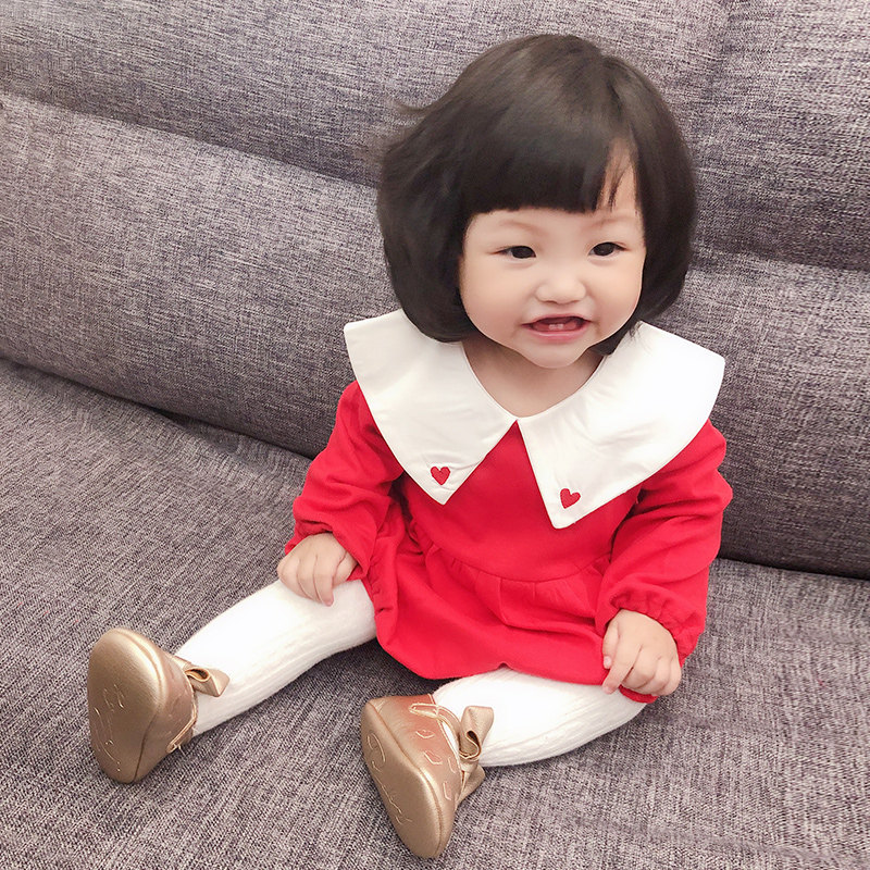 Spring Autumn Female Baby Full Moon 100 Days 3 Years Old Red Long Sleeve Bag Farted Baby Pure Cotton Love Princess Gown