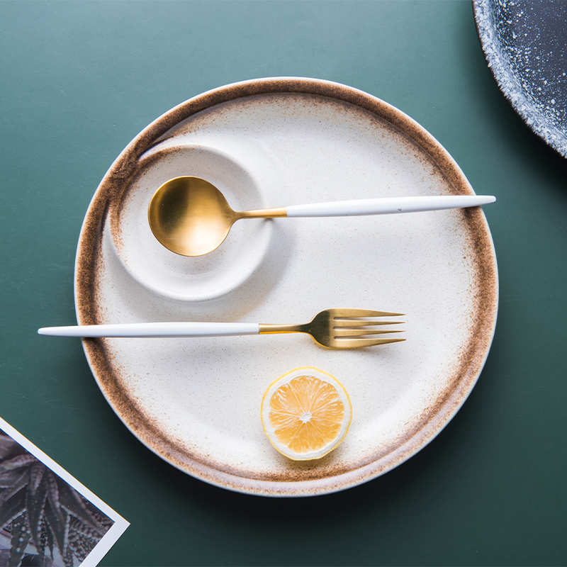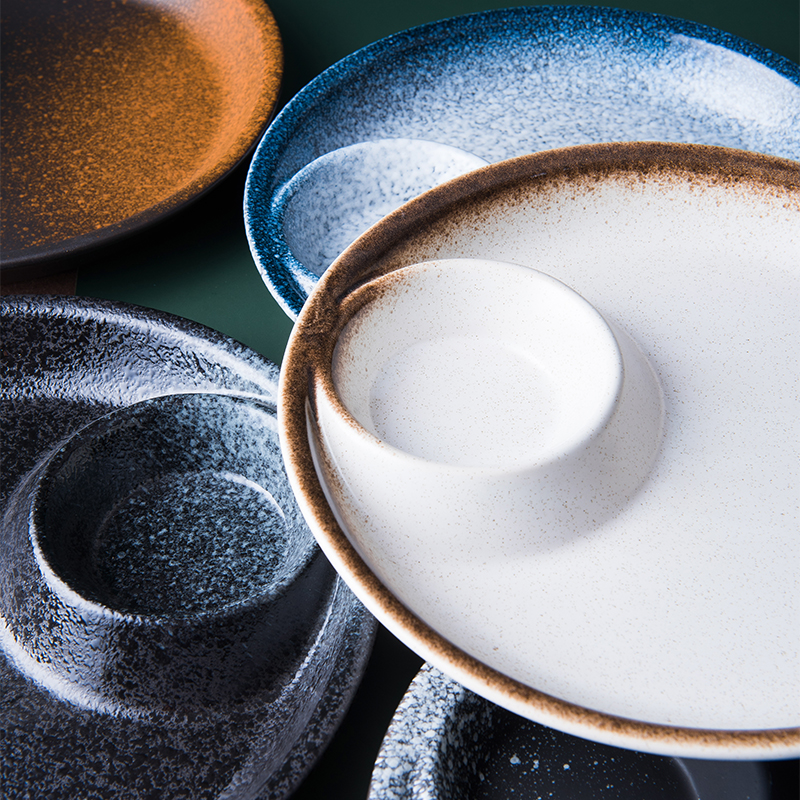 Water dumplings Home Ceramic Cutlery With Vinegar Dish Day Style Round Creative Cold Dish Plate Retro Plate Fish Dish