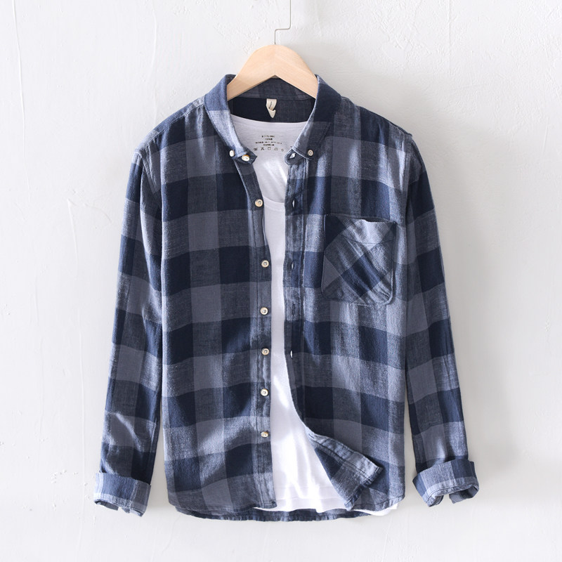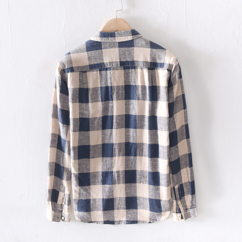 Polar hemp Japanese fresh cotton shirt men long sleeve relaxed young literary and art thin linen shirt