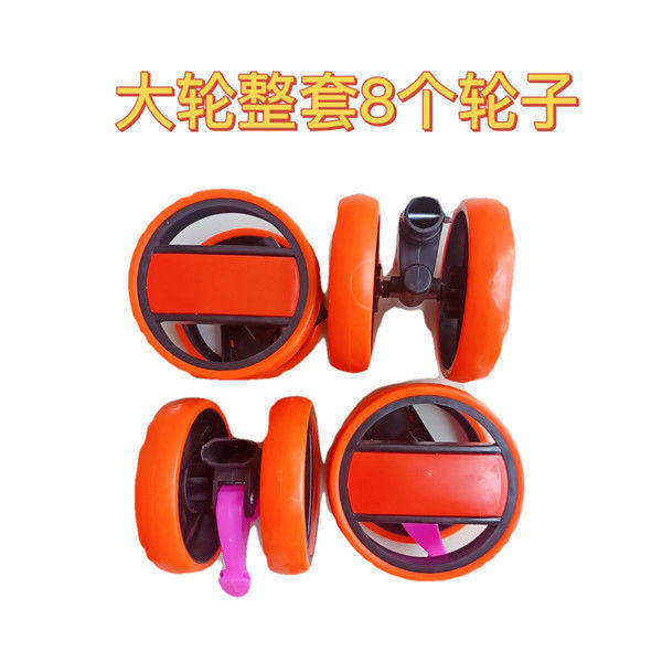 One set of front wheels with a diameter of 12.5cm. Two sets of front wheels with a diameter of 12.5cm. One set of rear wheels with a diameter of 12.5cm. Two sets of rear wheels with a diameter of 12.5cm.