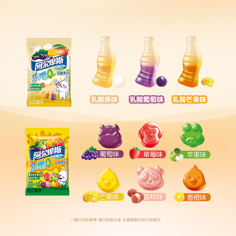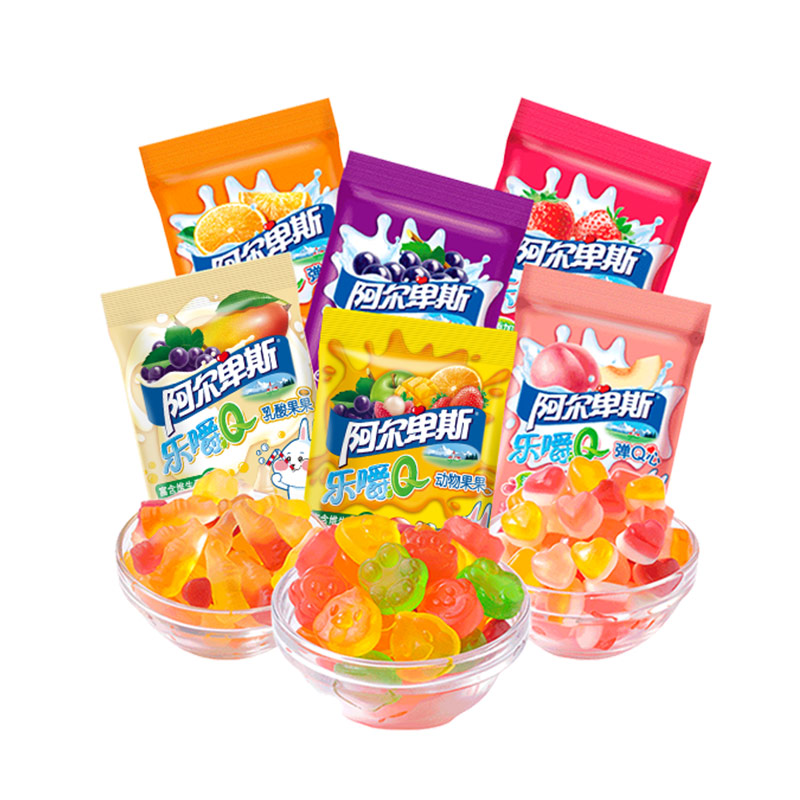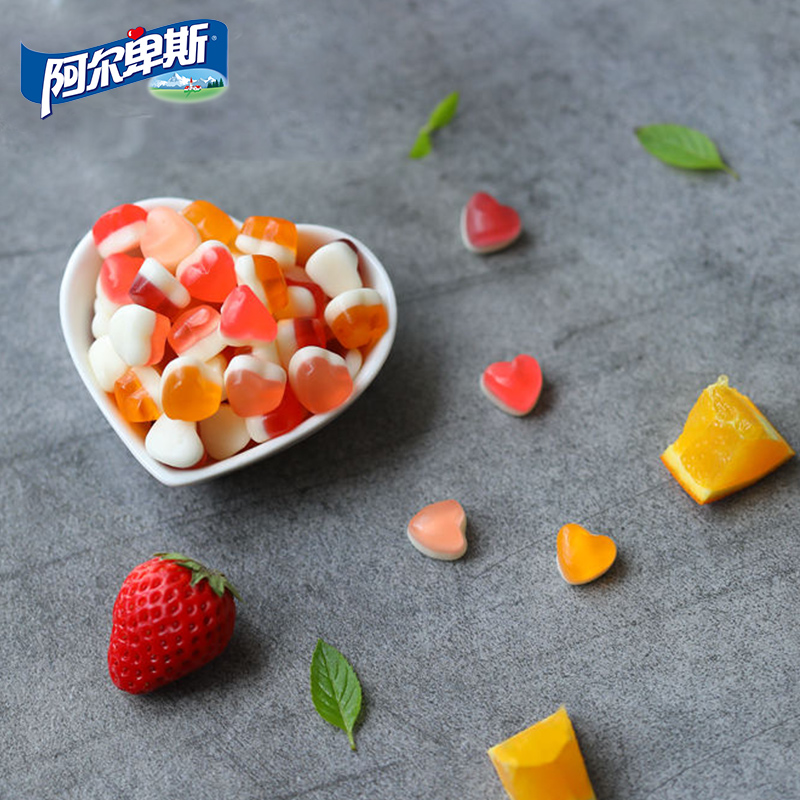 Alps chew Q heart-shaped sweet rubber candy bulk juice creative cute fruit candy 60g*2 bags