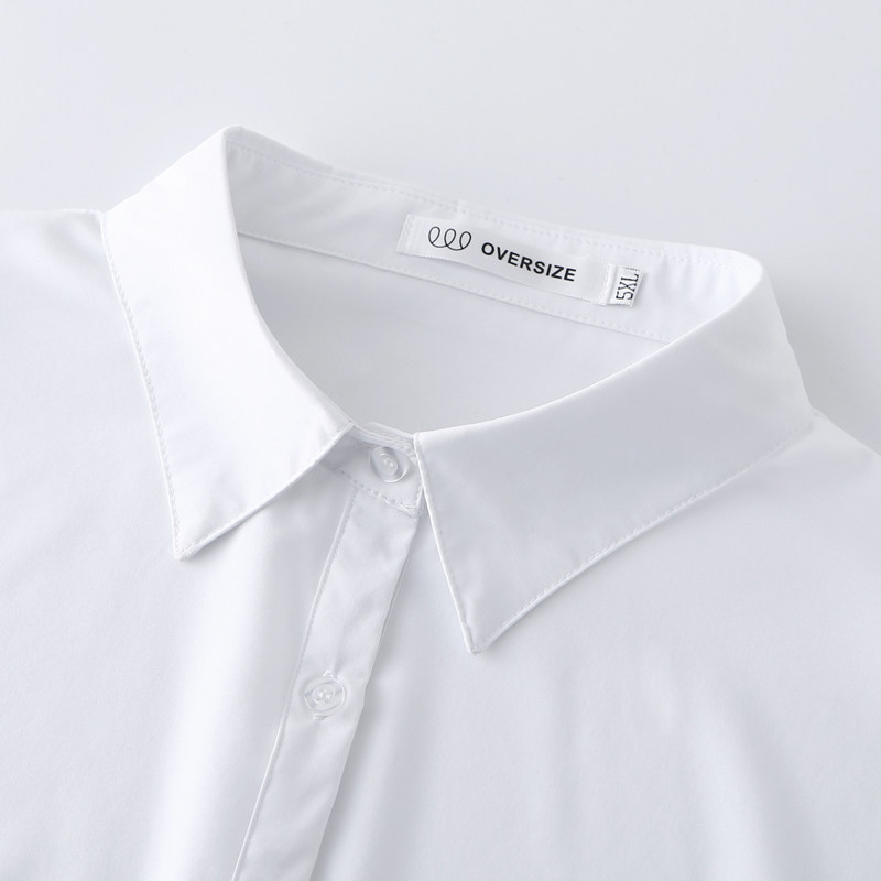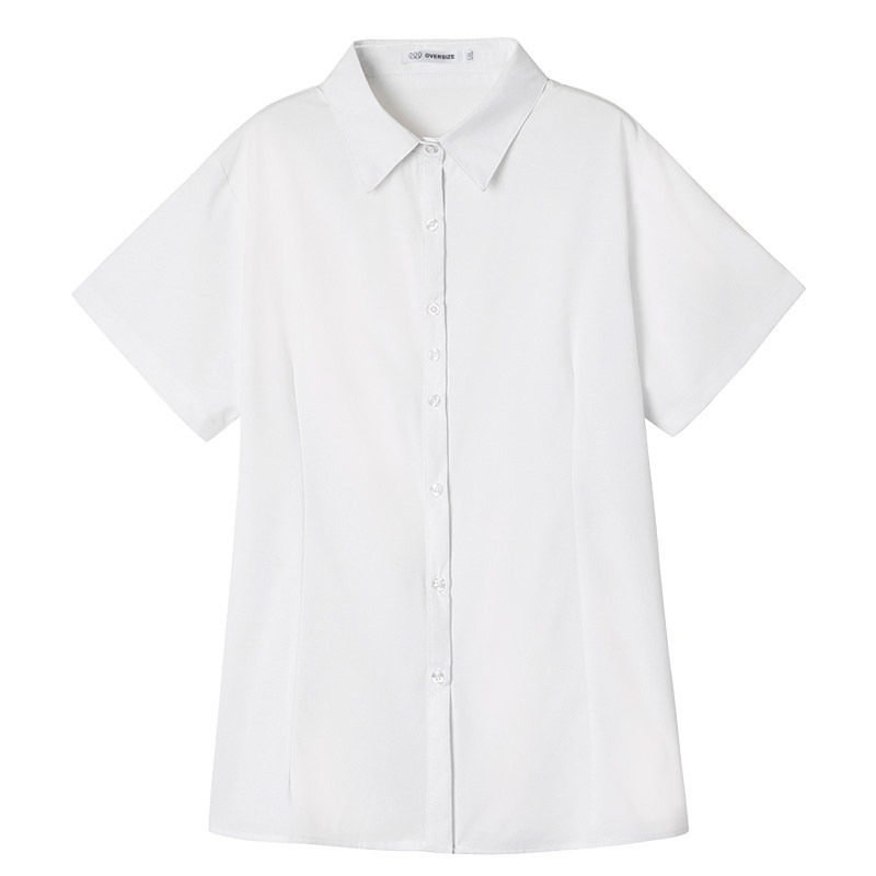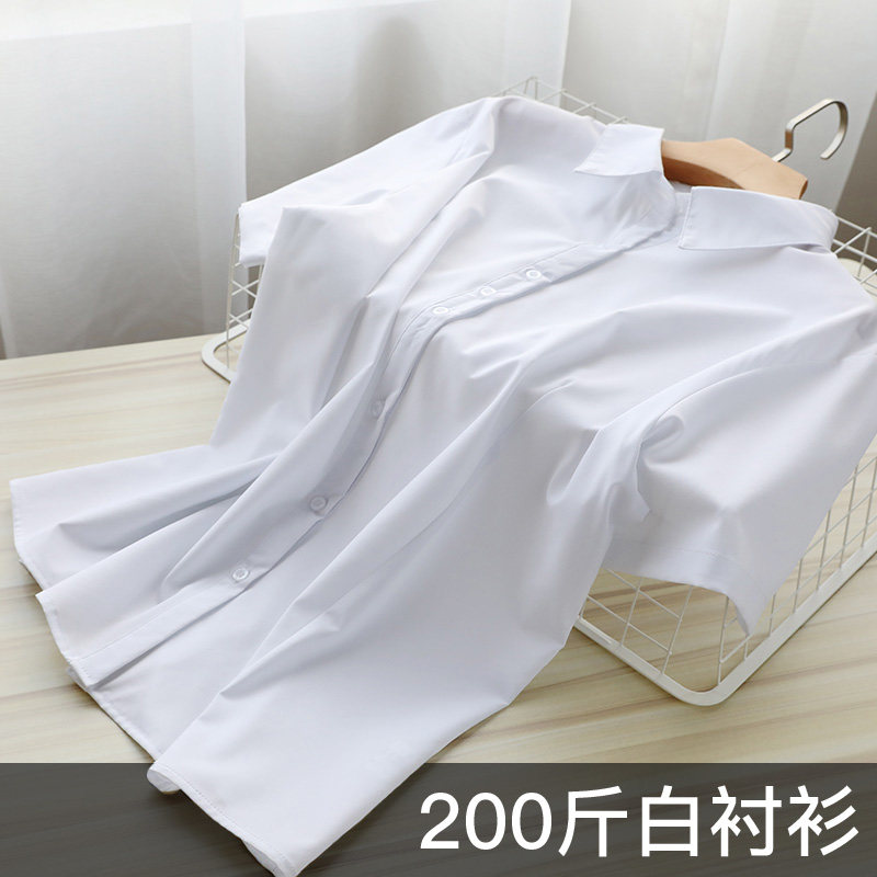 Elastic Free Ironing Short Sleeves Large Size White Shirt Woman Summer Fat Younger Sister Positive Dress Shirt Workwear Workwear Plus Fat Increase