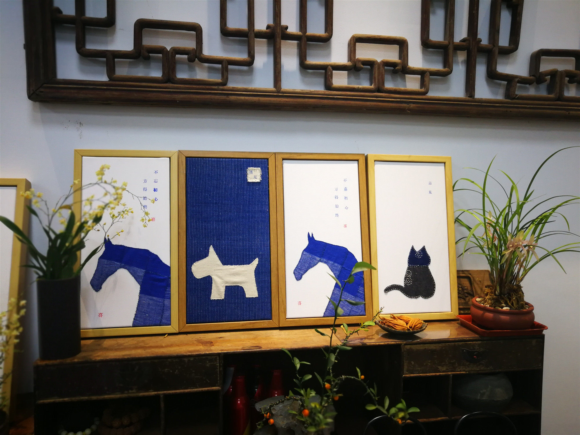 Bu Yuan Ji old cloth handmade embroidery painting collage personality decorative canvas stickers retro decorative painting modern
