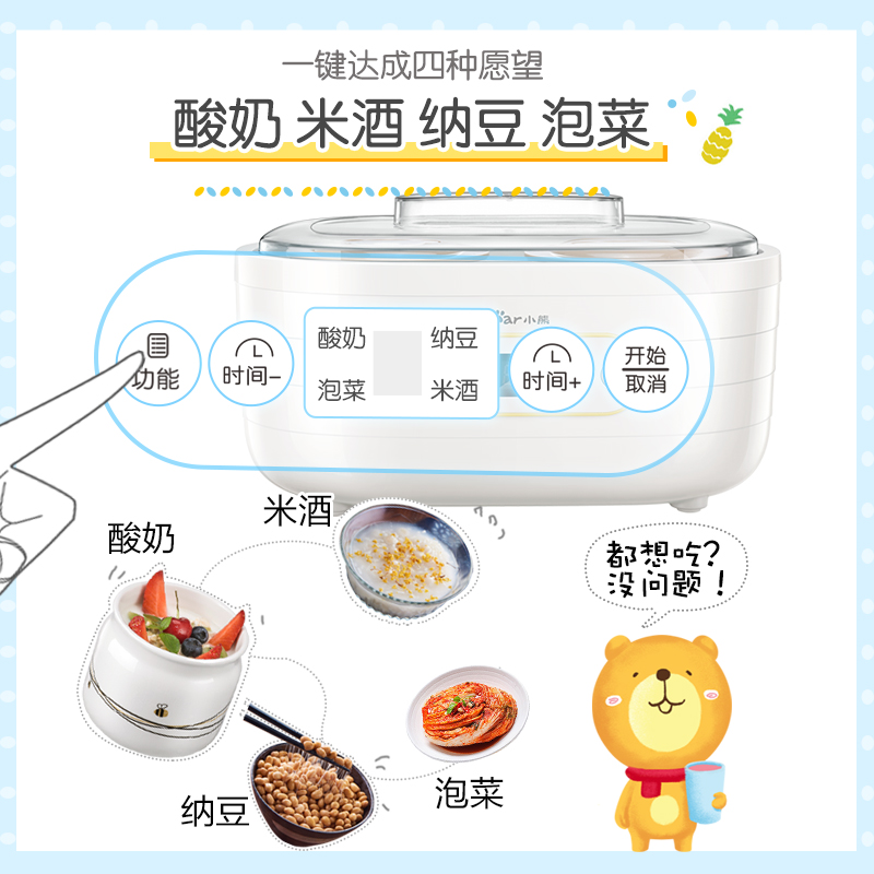 Small Bear Yogurt Machine Home Fully Automatic Small Multifunction Ceramic Sub-Cup Homemade Sauerkraut Rice Wine Fermented Natto Bean Machine
