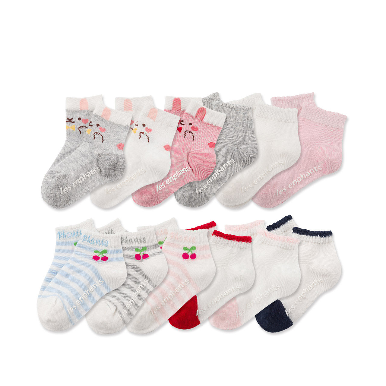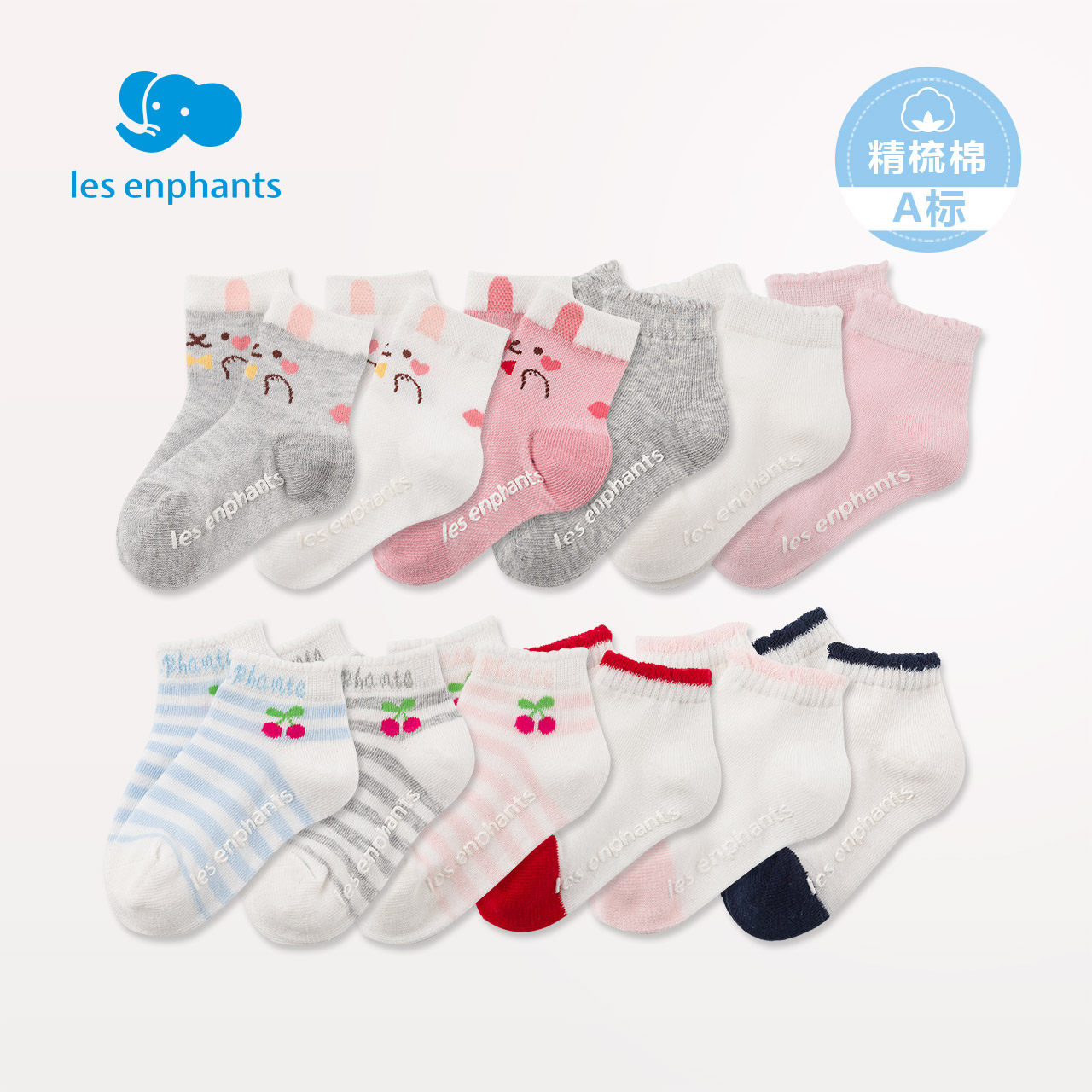 Les enphants baby socks women's baby non-slip cute socks spring and autumn children's socks thin section breathable 3 pairs