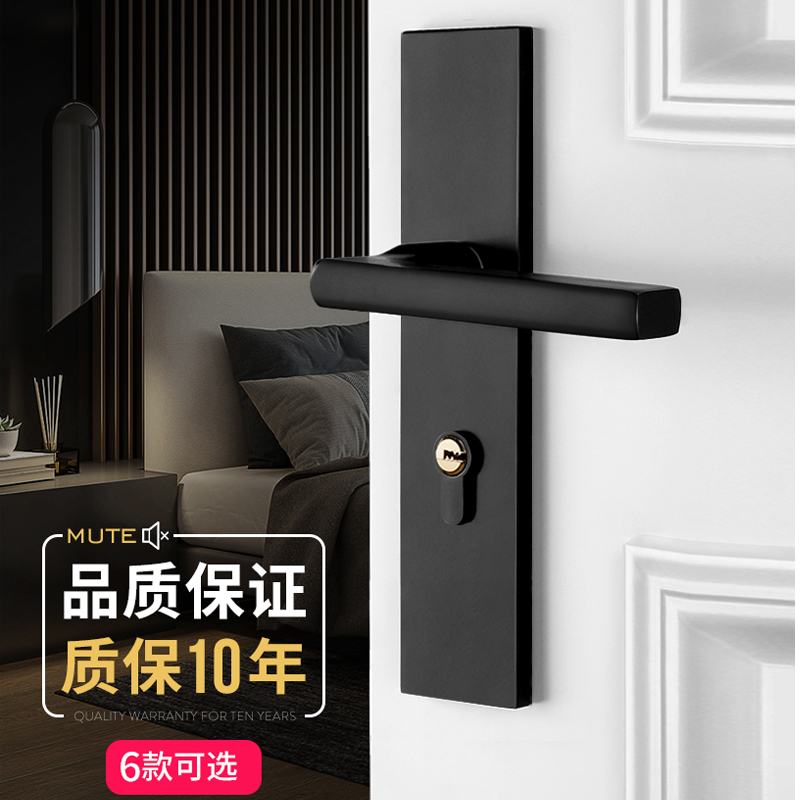 Silent Door Lock Indoor Bedroom Room Door Lock Makeup Room American Black Solid Wood Door Handle Universal Lock