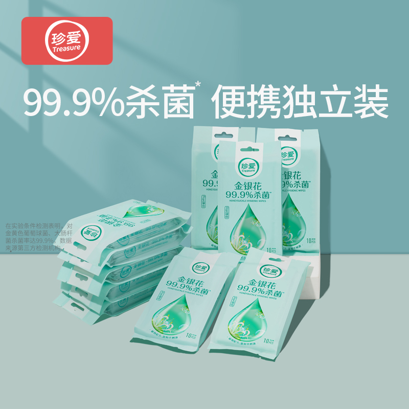 Cherish honeysuckle sanitary wipes paper restaurant dining table wet wipes adult single-piece mini portable independent pack 10 pieces x 10 packs