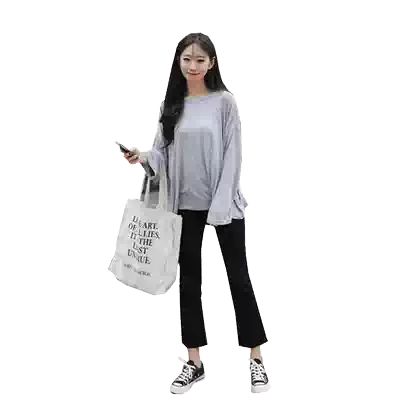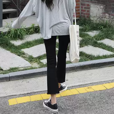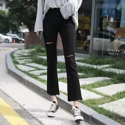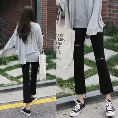 Black high-waisted micro-lapped jeans women's ripped autumn new student Korean loose thin nine-point trumpet trousers
