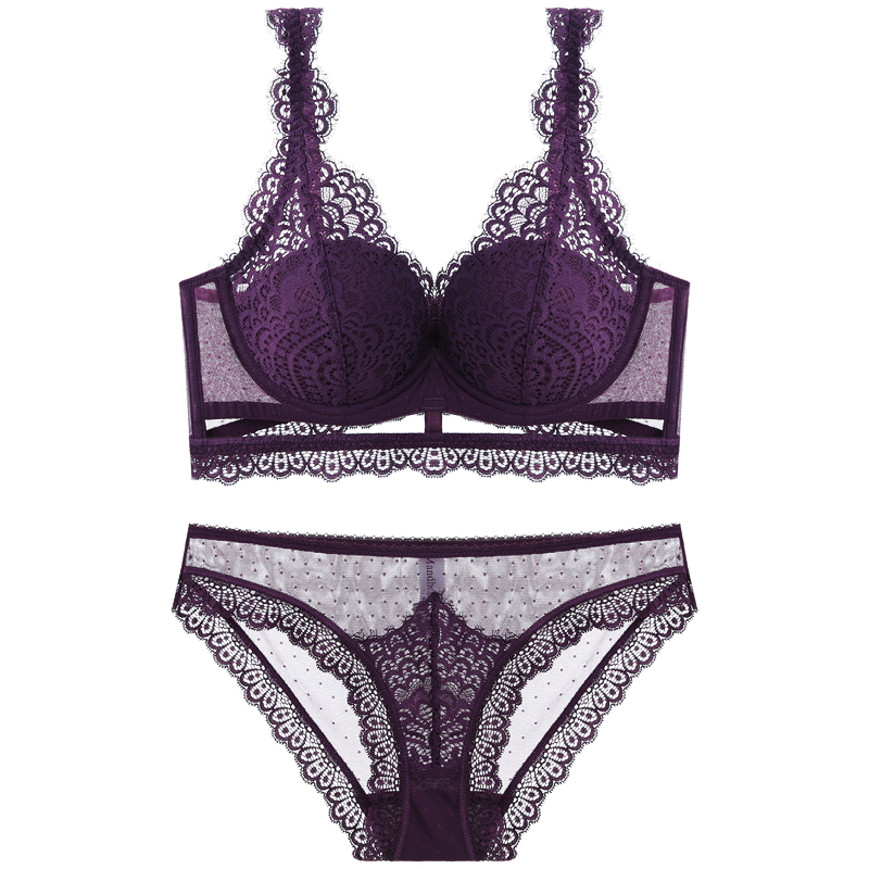 Style Comfort Breathable Slim Fit Women's Underwear Sexy Eyelash Lace Seduction Lingerie Suit Deep V Onto a bra