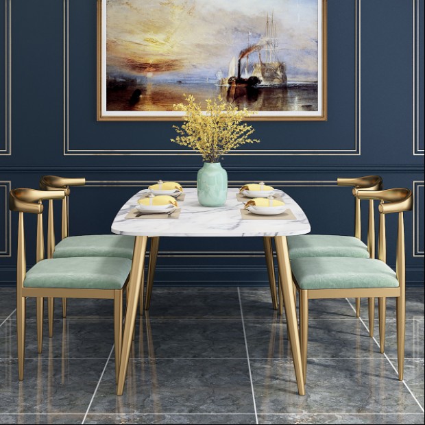 Nordic Marble Table Rectangular Light Lavish Dining Table And Chairs Combined Modern Minima Small Family Dining Table Home Tea Table