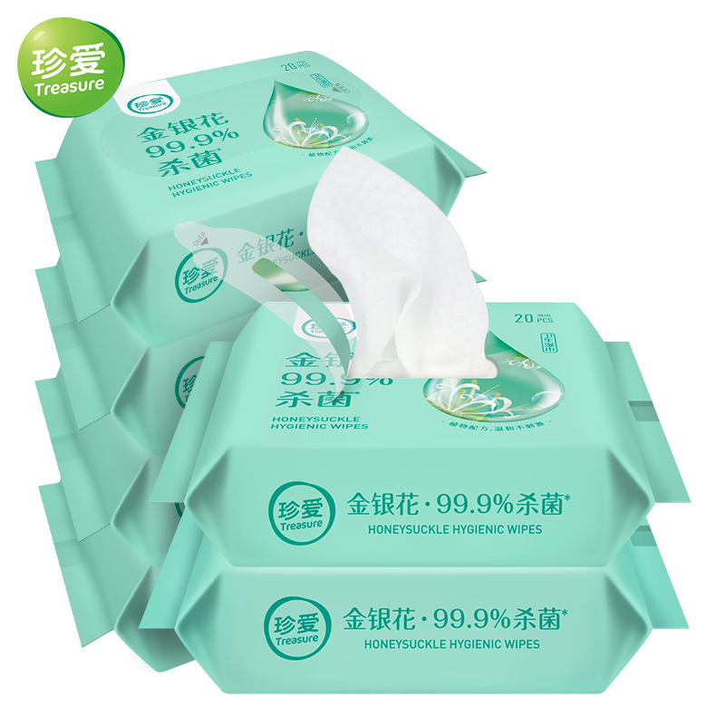 Treasure honeysuckle wet tissue 120 pumping small bag out portable packaging for dinner wet tissue adult 6 Packaging