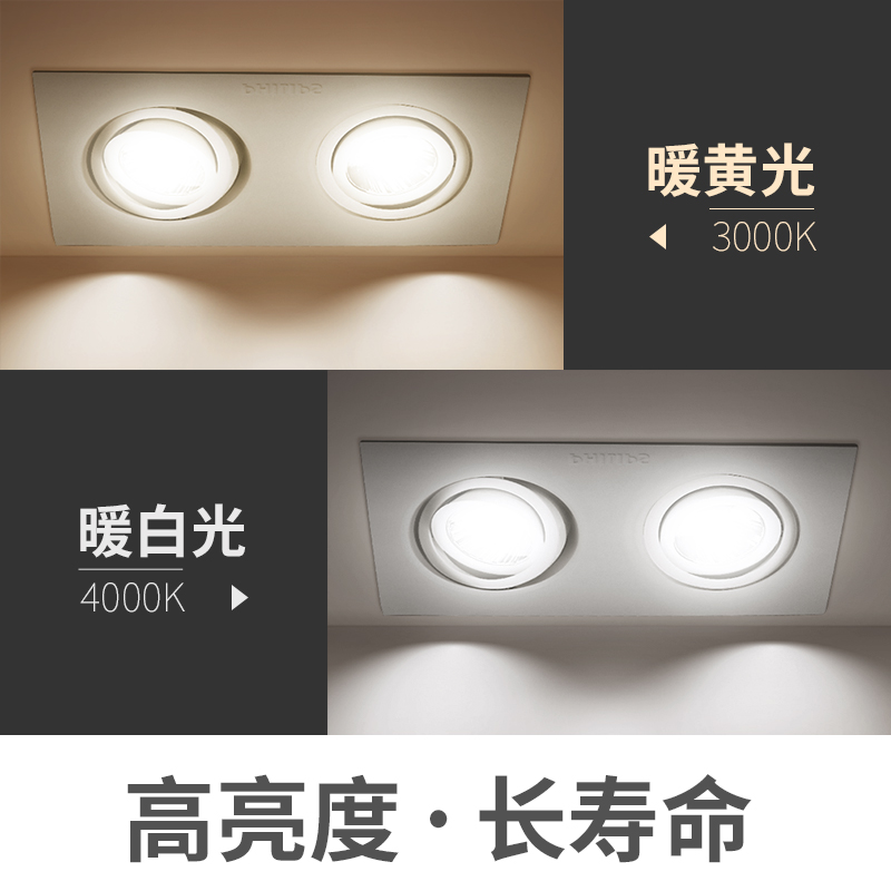 Philips double head cylinder light led embedded home double hole spotlight double cylinder bucket liner light grid lamp rectangular 18w