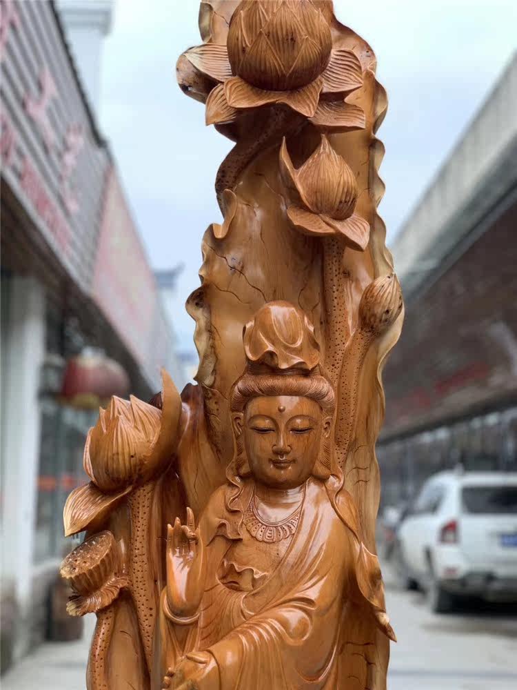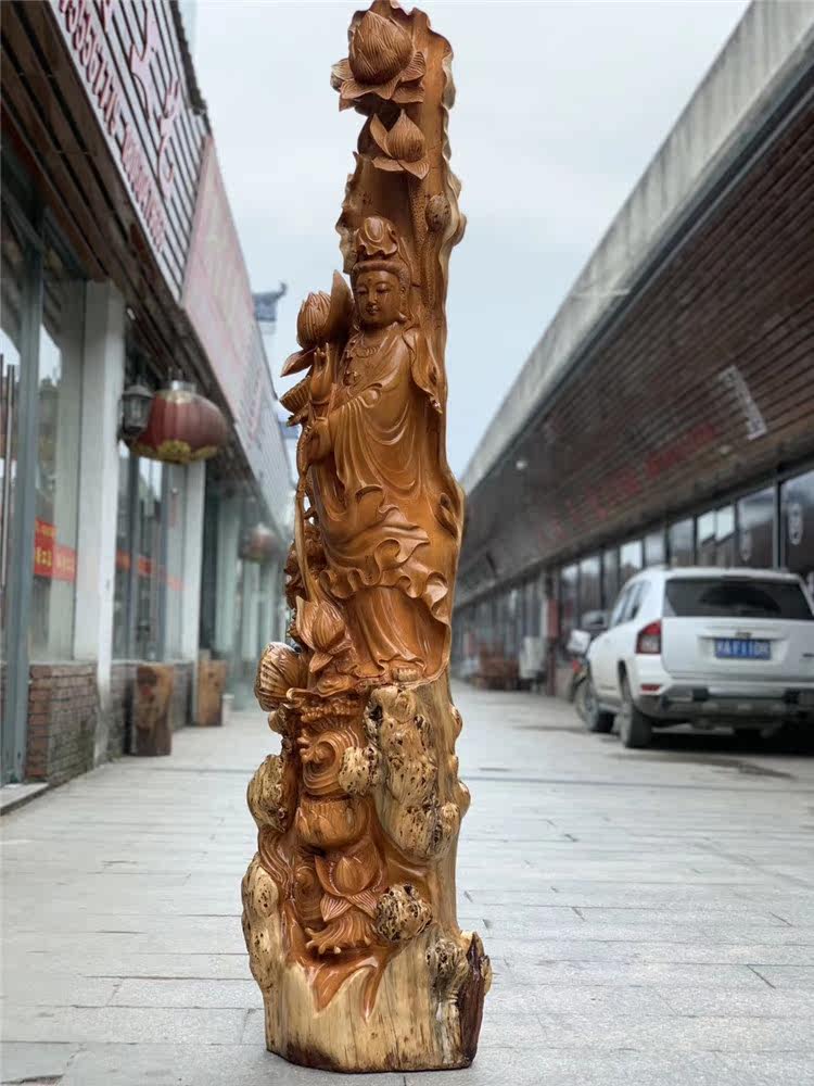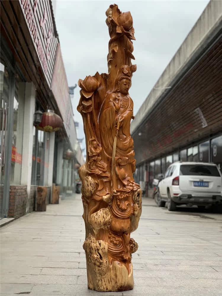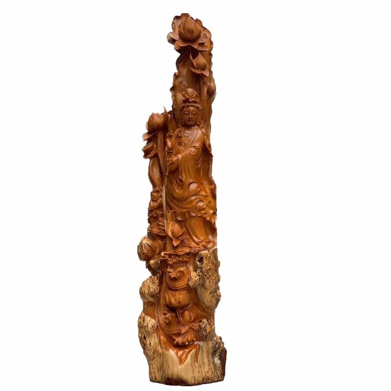 Zhangmu yew wood carving Guanyin Buddha statue of Buddha Millver Kuan Kung Lord large root carving swinging piece solid wood carving craft gift swaying decoration