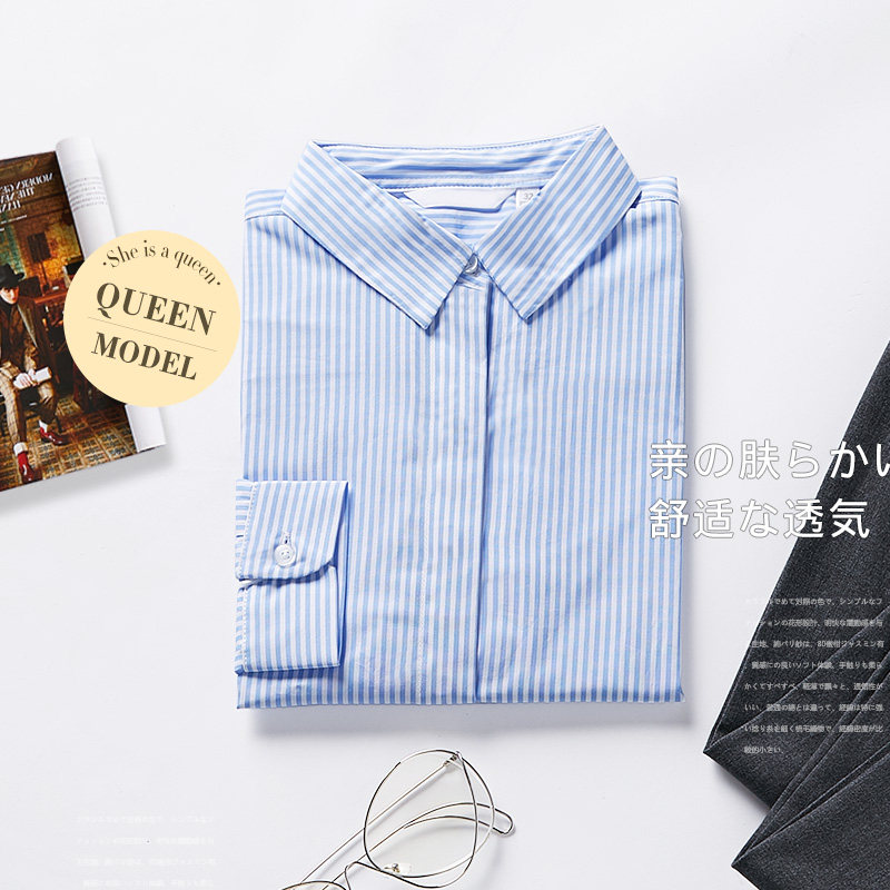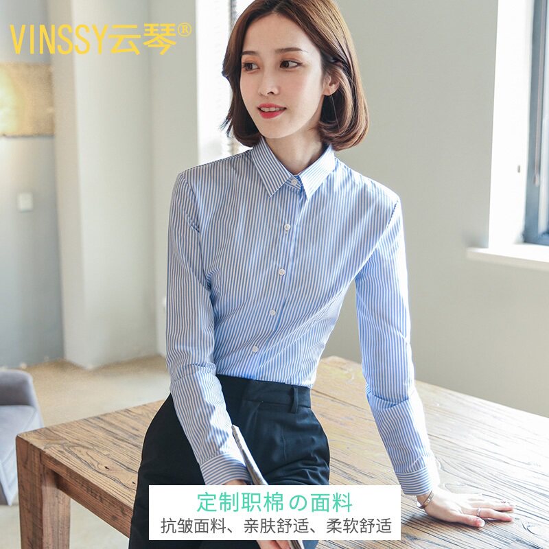 Blue and white striped shirt women vertical stripes 2023 Spring and Autumn Han Edition professional clothing casual workers shirt