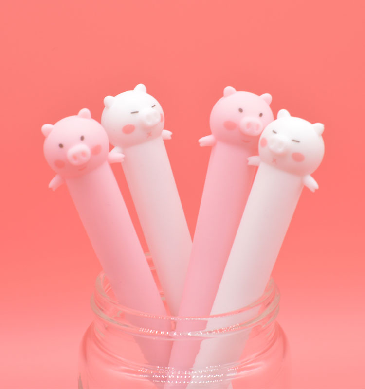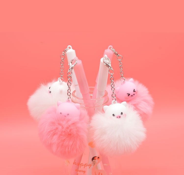 Year of the Pig Cute Piggy Piggy Hair Ball Gel Pen for Elementary School Students Cute Fresh Soft Silicone Water Pen Office Stationery