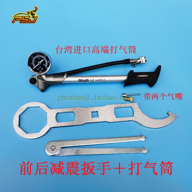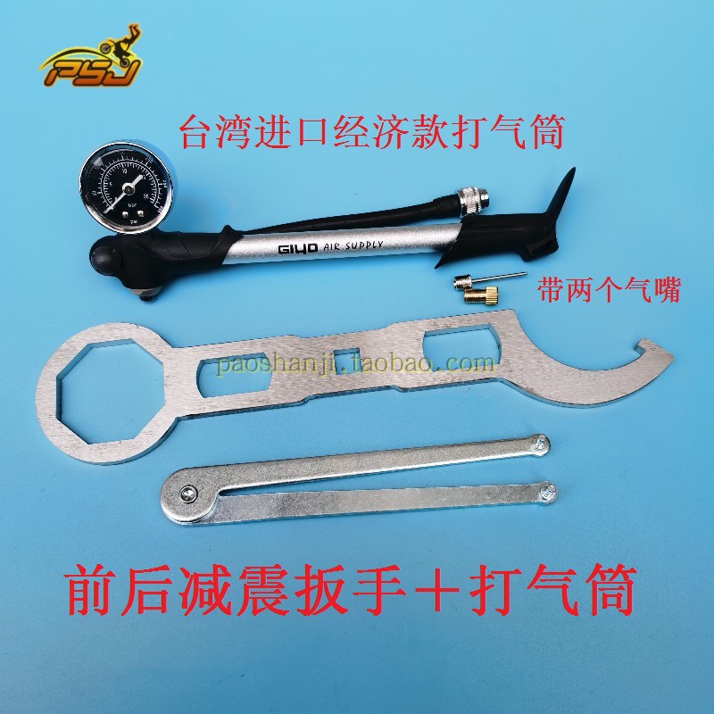 Rear shock pump + two wrenches ➕ two air nozzles inflator ➕ two air nozzles