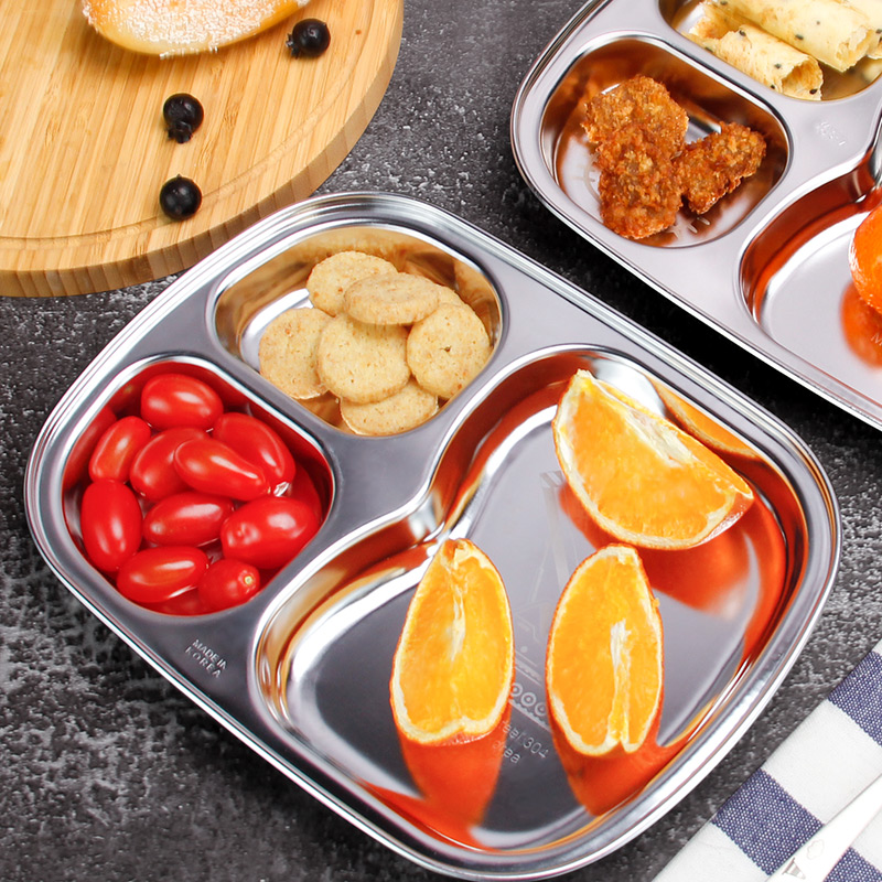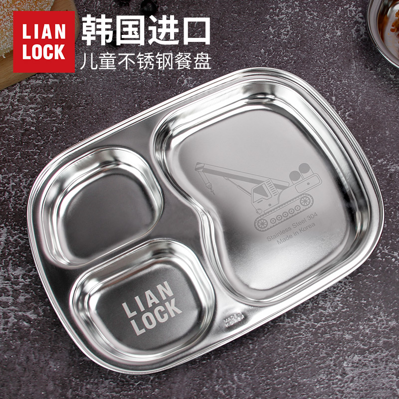 United Button Korea Imported children Stainless Steel Dinner Plate Rice Tray Water Fruit Tray Separated Infant Cutlery-Taobao