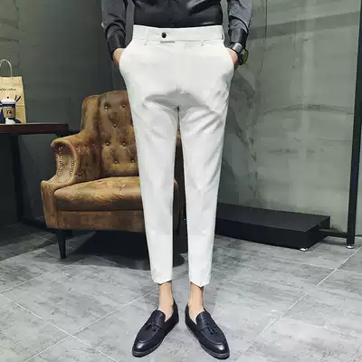 Ankle-length pants men's stretch feet straight casual pants black slim pants Korean trend spring 9 points trousers