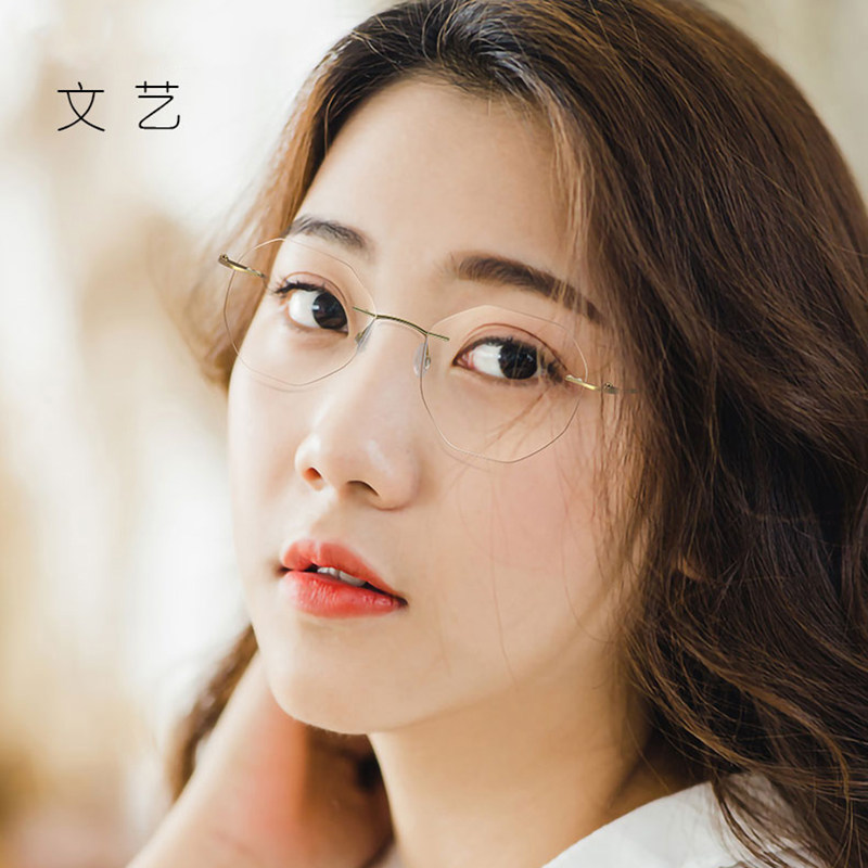 Rimless glasses oval pure titanium glasses frame glasses frame frame retro literary ultra-light myopia glasses men and women 3