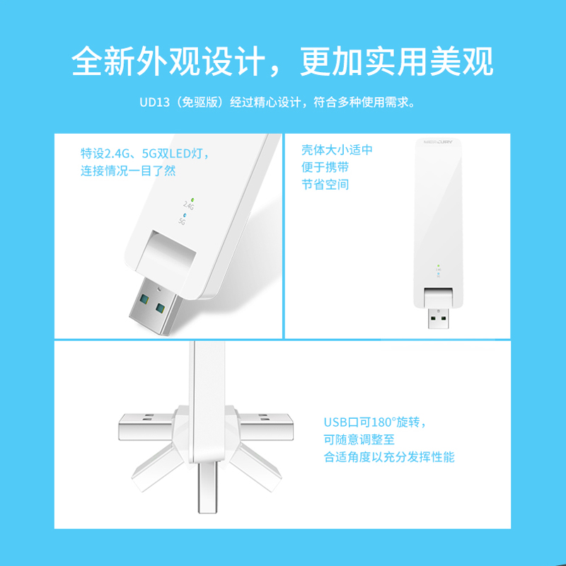 MERCURY Mercury UD13 free-drive version 1300M dual frequency 5G one thousand trillion USB wireless network card desktop receiver-Taobao