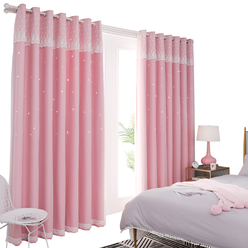 Net red curtain hollow star shading cloth Finished screen curtain Double bedroom floor-to-ceiling window Bay window Princess girl heart