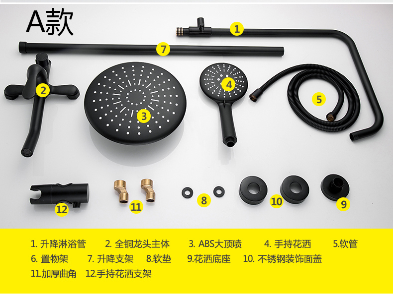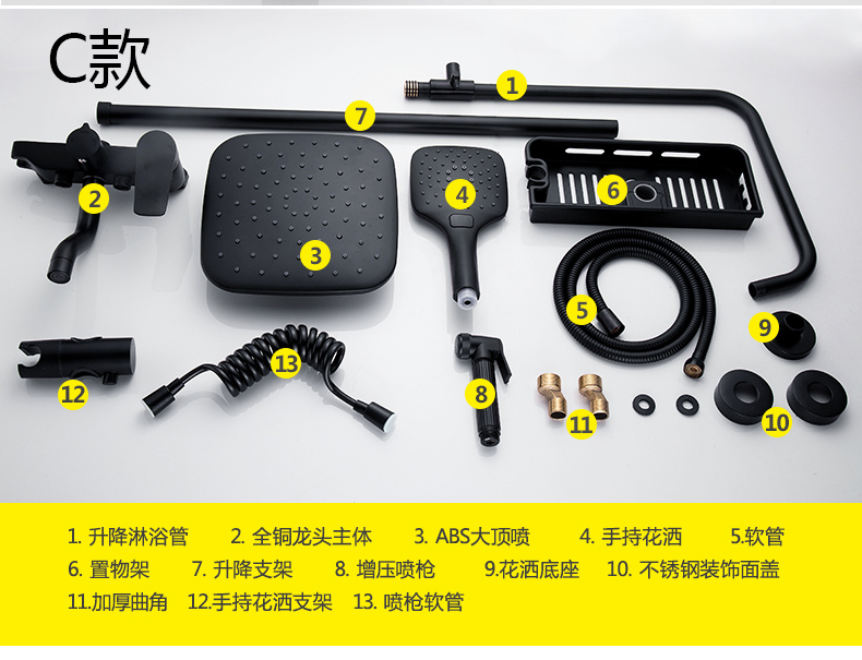 Black shower set Full copper household shower flower sprinkler powder room wall-mounted European-style shower head
