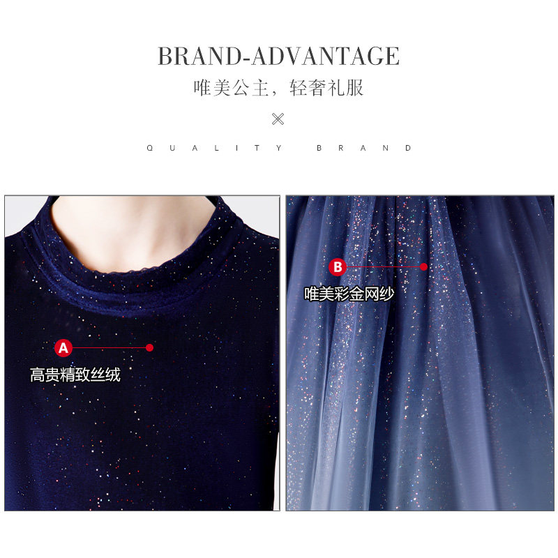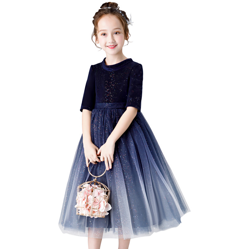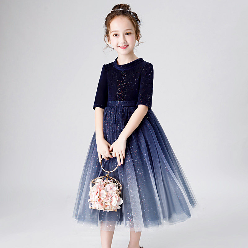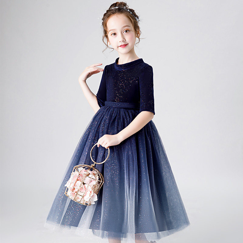 Girls princess dress flower girl children's dress blue violin piano performance dress playing wedding dress little girl long dress