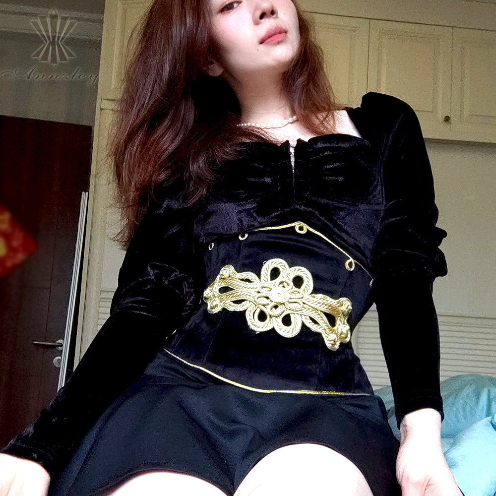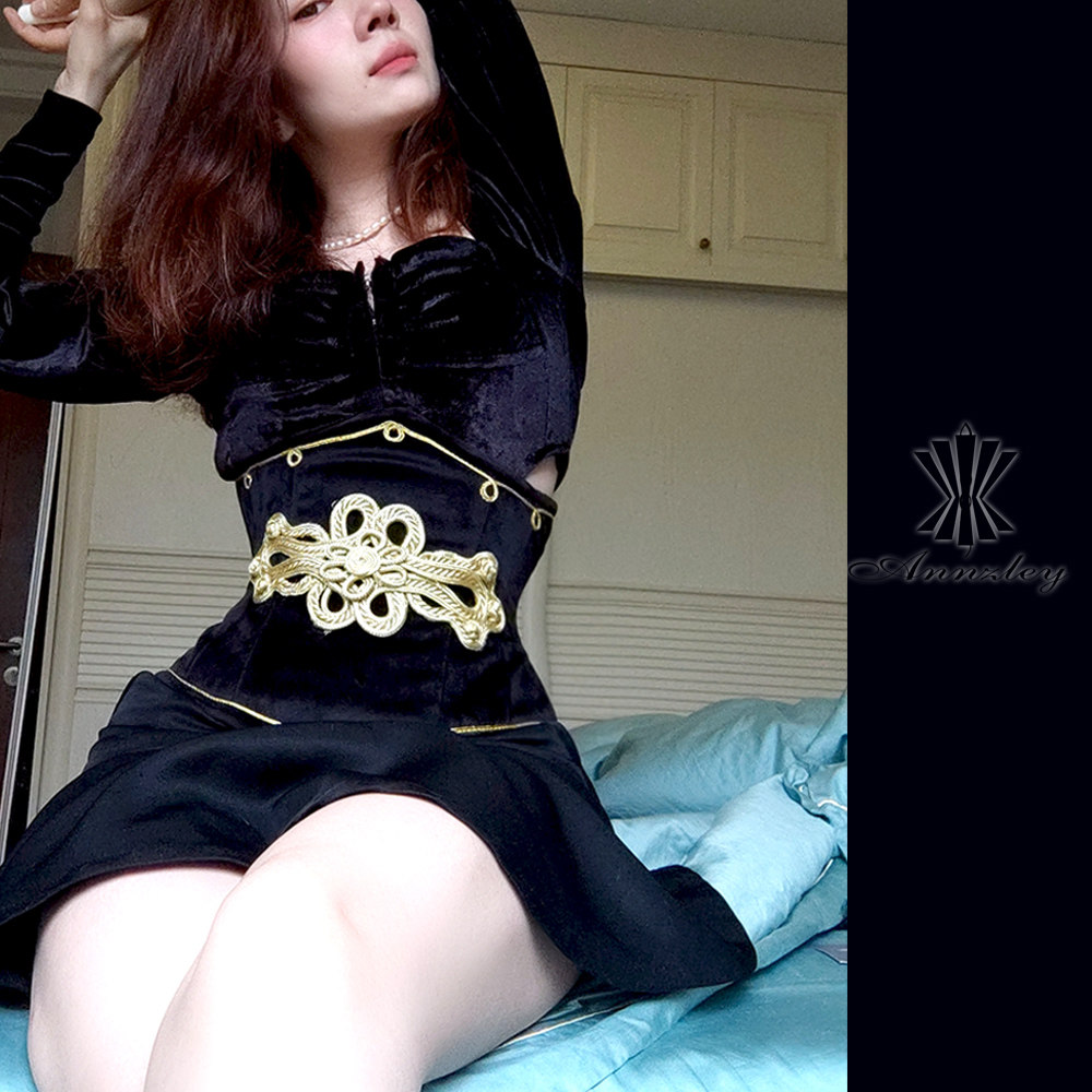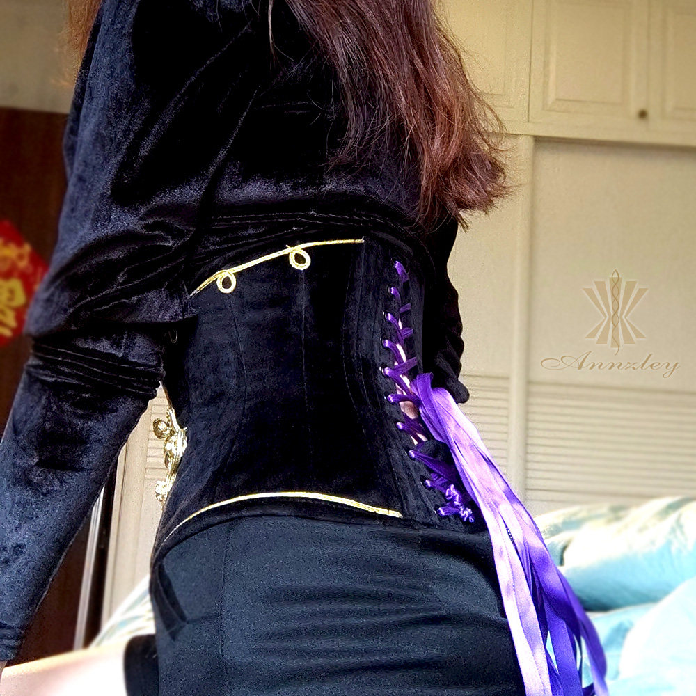 Annzley new black velvet outside wearing short bundle waist steel bone corset palace bunches suit waistcoat waistcoat