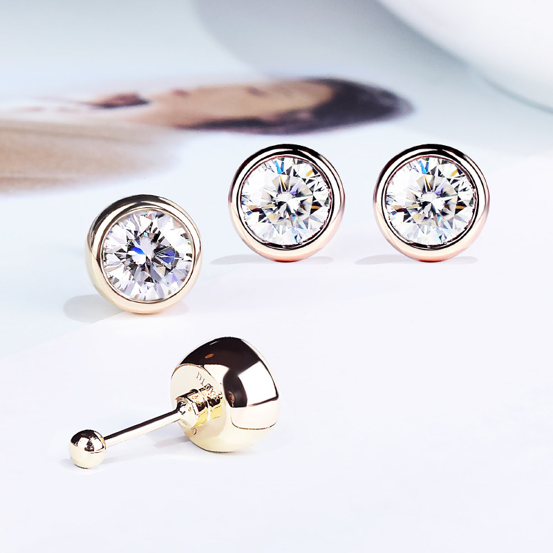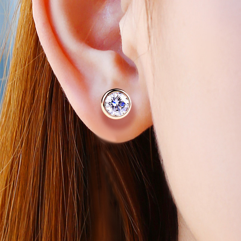 American Mossan Stone Earshot Woman 18K Gold Gold Platinum Rose Gold Full And Smooth Single Drill Water Bubble Ear