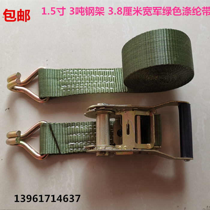 Wagon Jun green bundled with car Cargo tightener with hook 1 5-inch 3 ton lager polyester fiber thickened