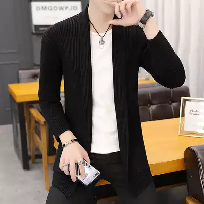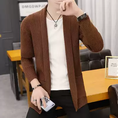 Knitted cardigan men's 2021 spring and autumn Korean coat trend social guy sweater wear men's coat cloak tide