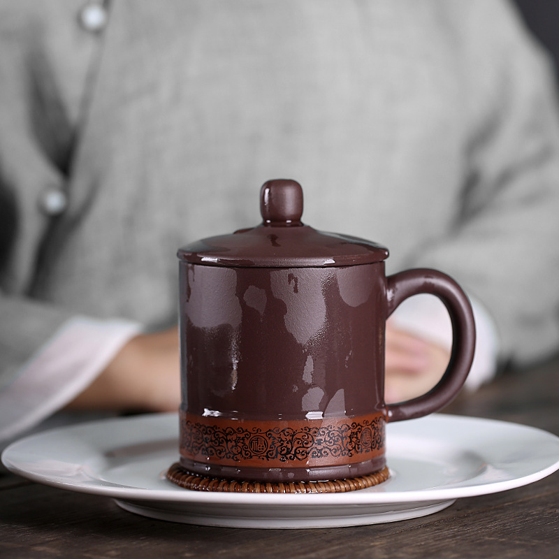 Net Red Yixing Purple Sand Cup Kung Fu Purple Sand Tea Cup Full Hand Tea Tea Home Men's And Women's Cover Cup Purple Clay Office Cup