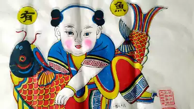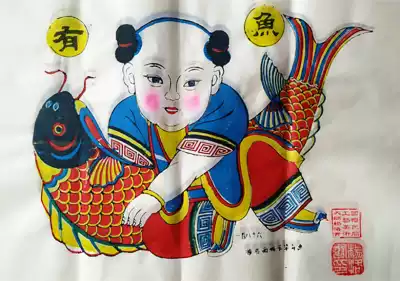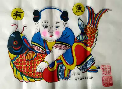 45*70 cm Hanting Yangjiabu Yang Luo Shu Tong Shunde Painting shop Woodblock woodblock New Year painting Every year there are fish calligraphy and painting