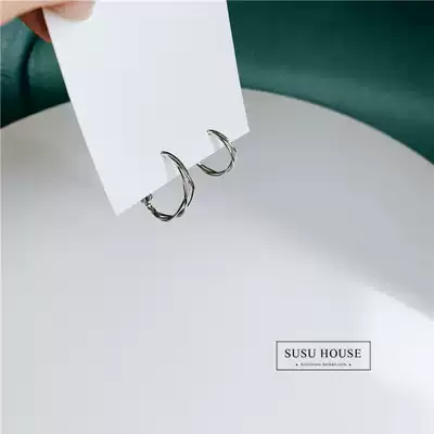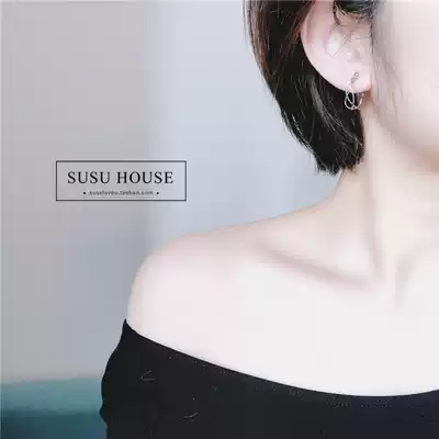 SUSUHOUSE design earrings Niche ring earrings Personality creative wild 925 silver needle ear clip no pierced ears