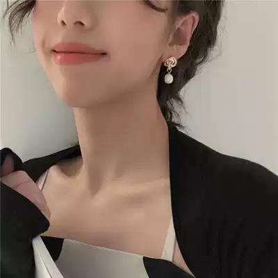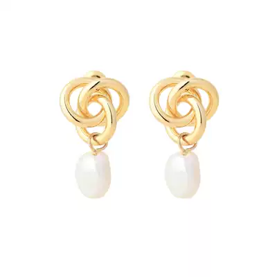 S925 silver needle wishfully knot ear needle natural pearl earrings female retro earrings female temperament design feel ear ornaments