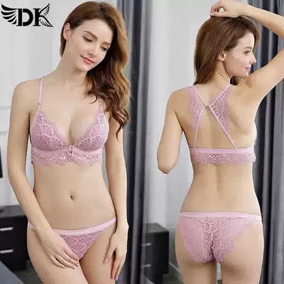 New DK European and American non-steel ring sexy beautiful back lace front buckle underwear set gathered bra female thin underwear female