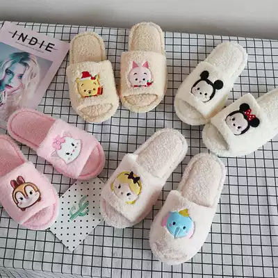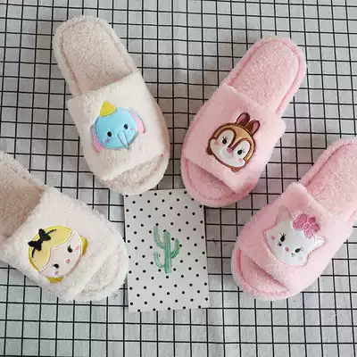 Japanese cute cartoon chipmunk Daisy Winnie the Pooh AB plush open-toed home Fish Mouth slippers