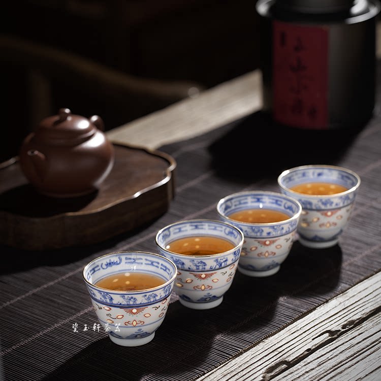 Green flower Lingang camel cup plus colorful blue-and-white camel cup
