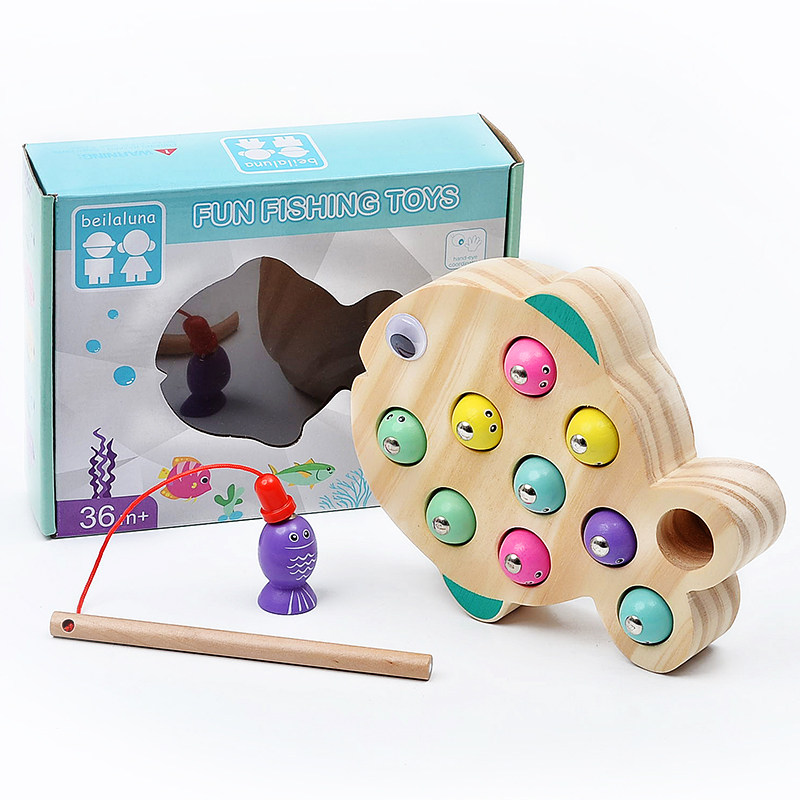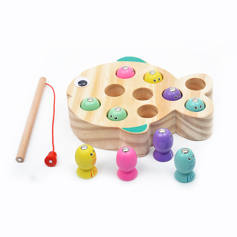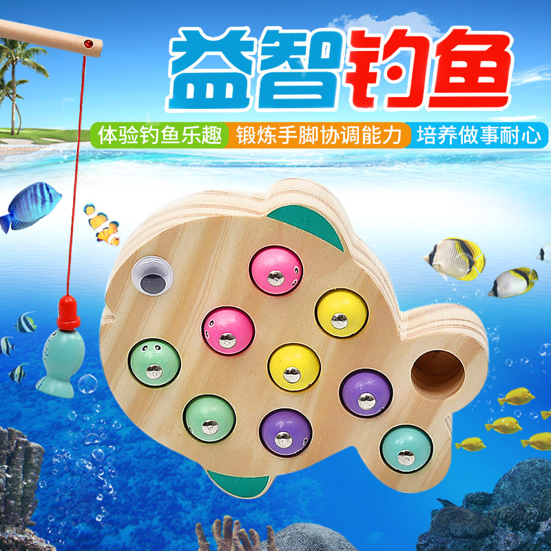 Children's Montessori early education puzzle 1-2-3 years old baby boy female fun wooden fishing toy Montessori