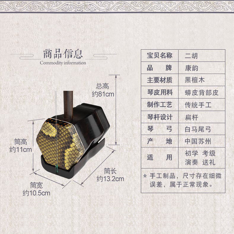 Professional examination Erhu ebony Suzhou National musical instrument Children adult general beginner Erhu factory direct sales