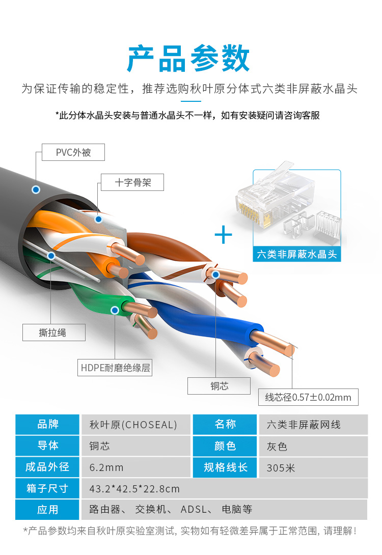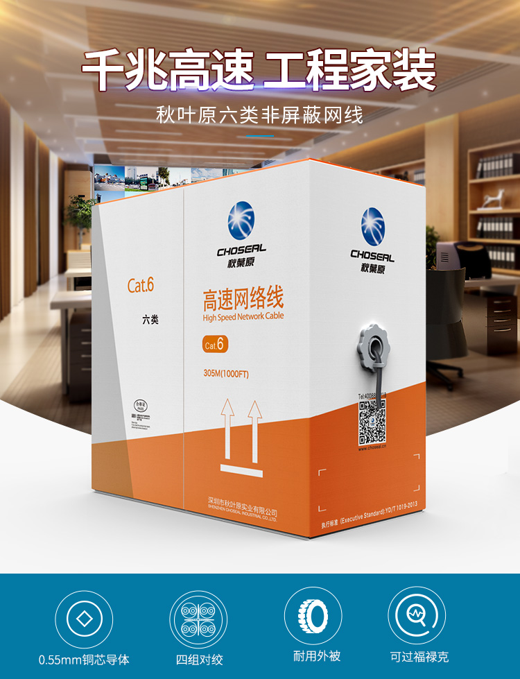 Choseal autumn leaf original QS6160 six types one thousand trillion mesh routes 0 57 8 cores oxygen-free copper 305 m orange grey