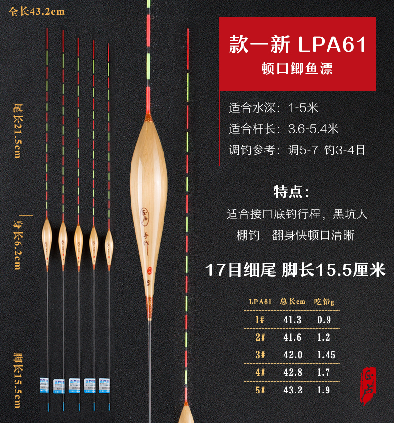 One slip mouth ultra-sensitive crucian carp drift LPA61 Two universal integrated reed drift LPA58 Three light mouth high sensitive crucian carp drift LPA02 Four black pit carp wild fishing crucian carp drift LPA5
