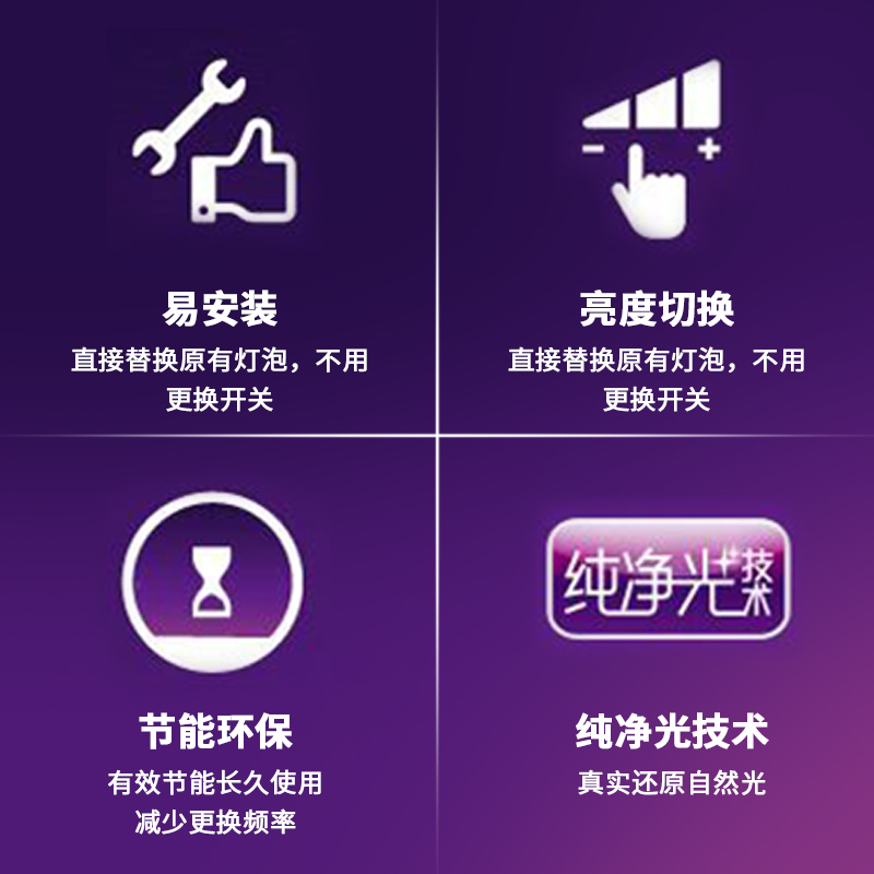 (E27) 6 W-section dimming (6500K white light) switch control (E27) 6 W two-stage dimming (3000K yellow light) switch control (E27) 7 W