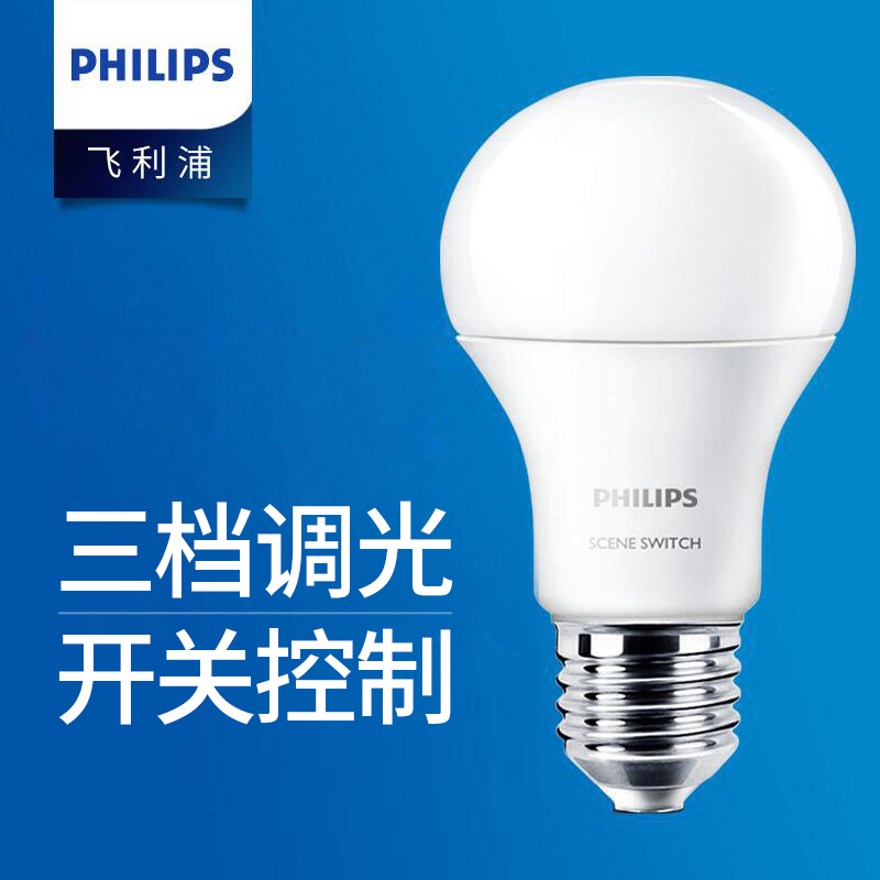Philips LED mise-less dimming bulb E27 screw with light headboard bulb adjusting three-chromatic light-changing three-section intelligence