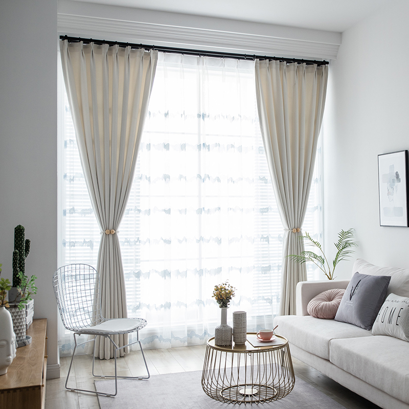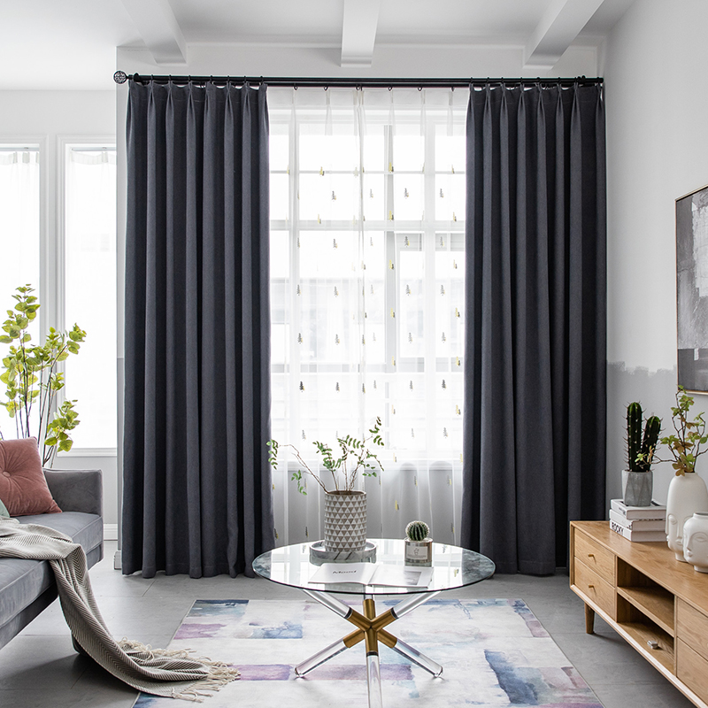 Custom Nordic minimalist shading machining finished curtains pure color light and luxurious modern living room bedroom floating olivia-Taobao